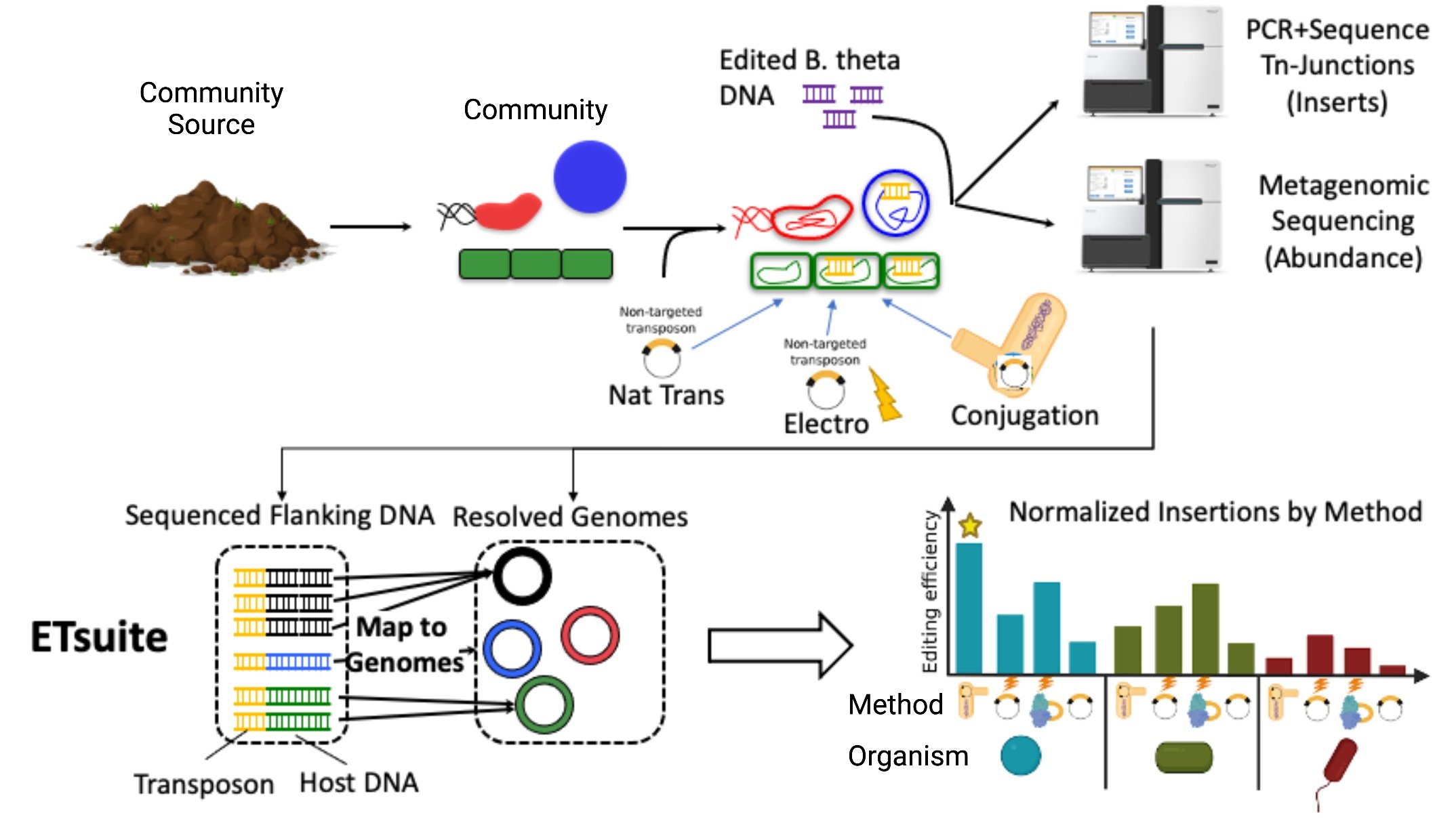 - Assess Delivery Methods: We use a technology known as Environmental Transformation Sequencing (ET-Seq; described below) to assess how well a specific DNA delivery approach can get DNA into microbes of this community.