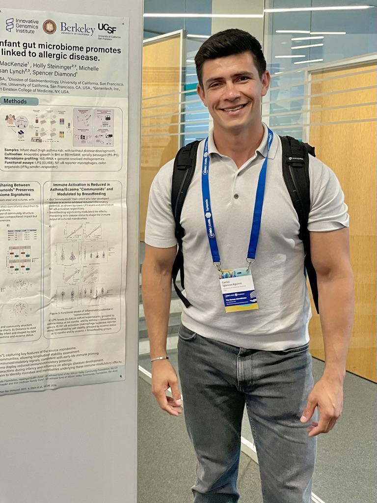 In September, Carlos attended the EMBL/EMBO Symposium on the Human Microbiome in Heidelberg, Germany. He presented a poster on our latest work examining the inflammatory potential and stability of infant-derived in vitro gut microbiome communities, which sparked strong interest and valuable feedback from colleagues. The symposium also provided a great opportunity to connect with researchers and exchange ideas with close collaborators— including Holly Steininger from the Lynch Lab, who appears in the photo — while engaging with the international microbiome research community.